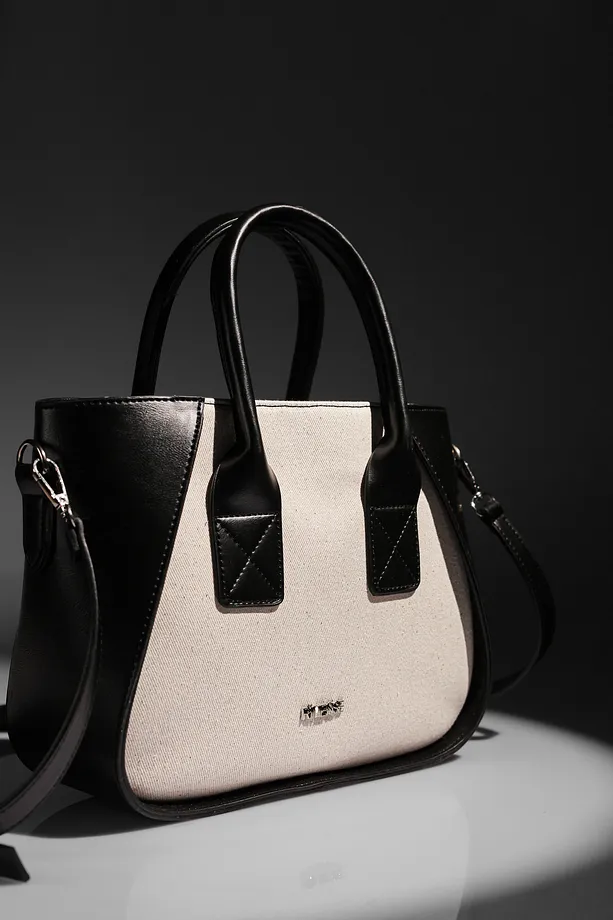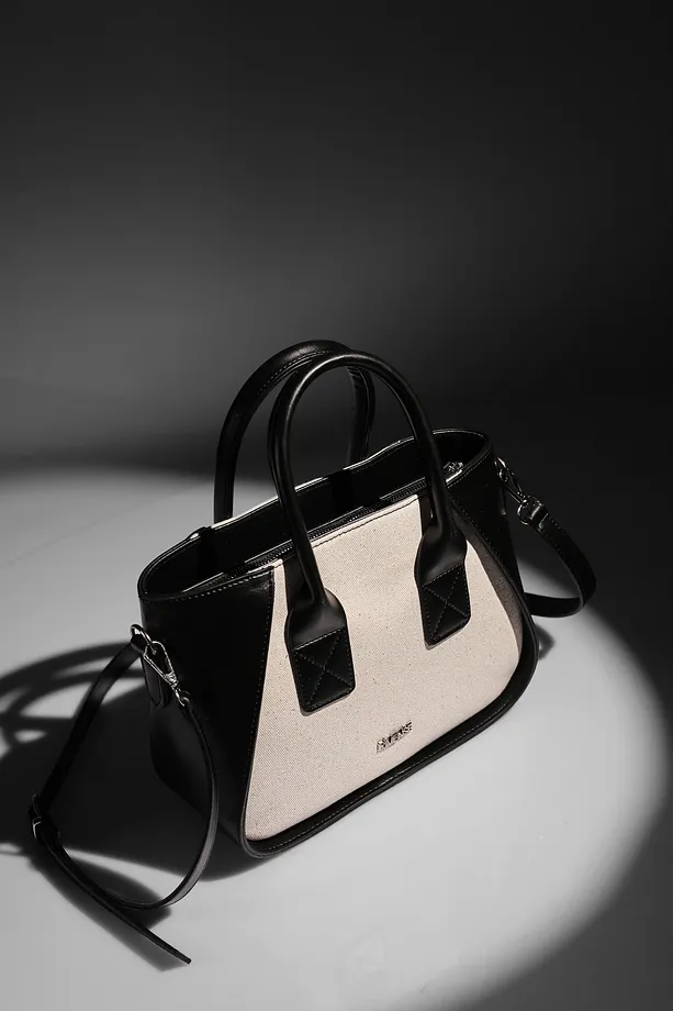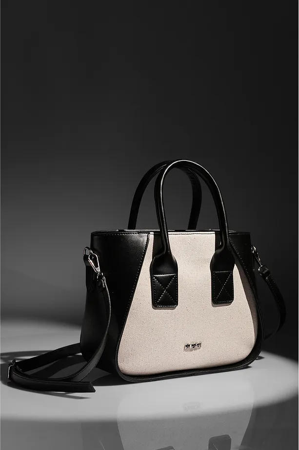 حقيبة نسائية متوسطة الحجم باللونين الأسود والبيج